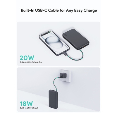PB-Y53P 20W 10000mAh Slim Powerbank mit integriertem USB-C-Kabel